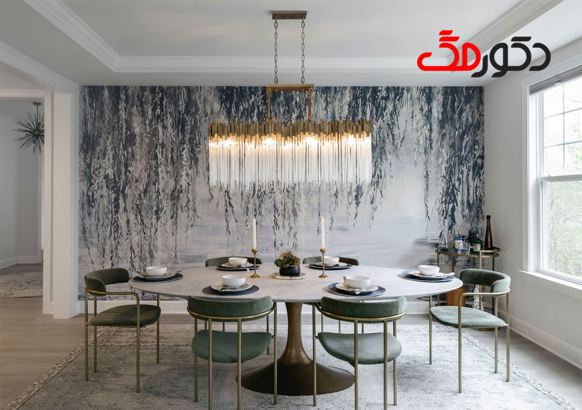 1. نصب لوستر خطی در بالای میز ناهارخوری