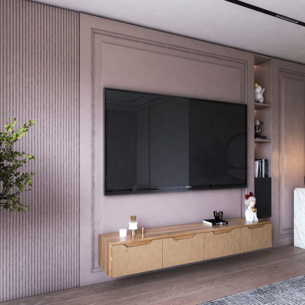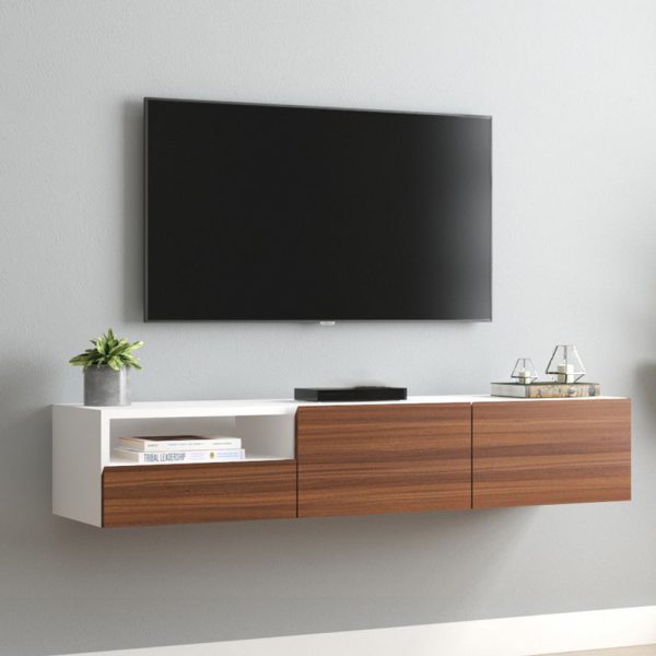 میز تلویزیون دیواری یکی از جدیدترین و کاربردیترین اجزای دکور مدرن محسوب میشود که علاوه بر نگهداری تلویزیون، مانند یک بخش نمایشی برای وسایل دکوراتیو عمل میکند. فضای زیر تلویزیون معمولا برای قرار دادن ساوندبار، وسایل صوتی تصویری و لوازم جانبی طراحی میشود و در نتیجه فضای کف پذیرایی خلوتتر و منظمتر به نظر میرسد. استفاده از میز تلویزیون دیواری برای خانههایی که فضای محدود دارند بسیار مناسب است و با نصب آن دیگر فضای زیادی برای میز زمینی اشغال نمیشود.