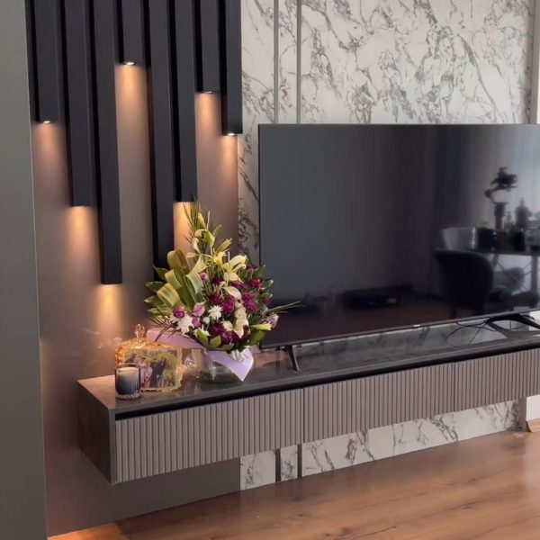 تاثیر نورپردازی و لوستر در جلوه میز تلویزیون دیواری