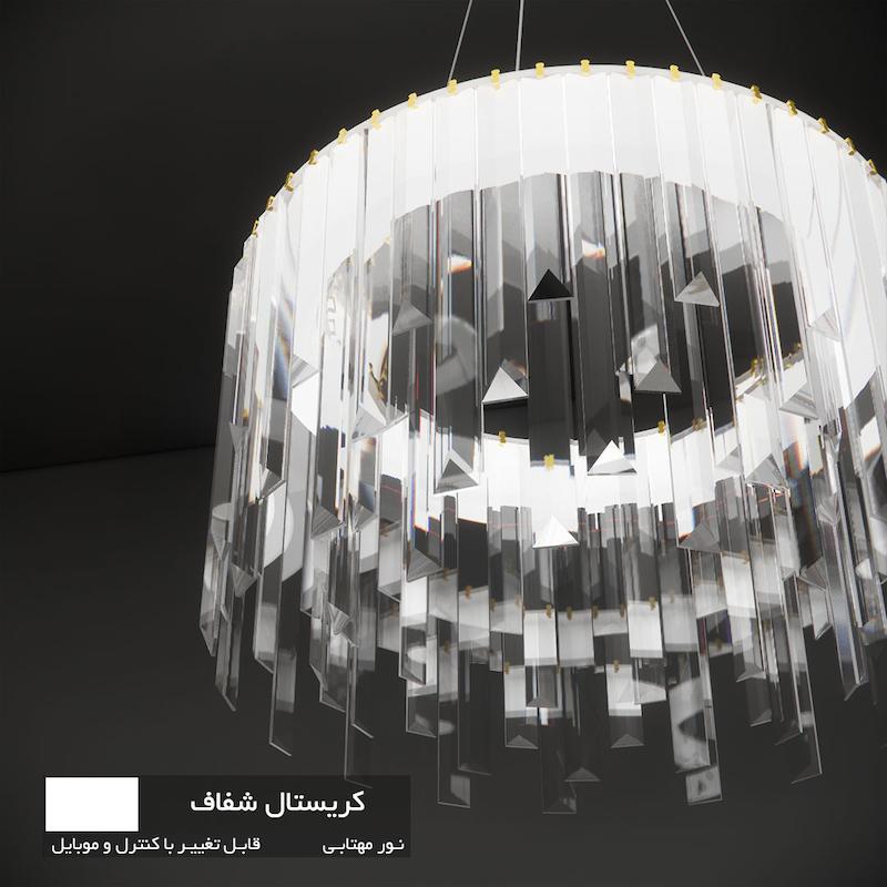 بدنه این لوستر از کریستالهای کاردی درجه یک با شفافیت بالا ساخته شده که در چهار رنگ قابل انتخاب (شفاف، شامپاینی، دودی، یخی) عرضه میشود. کریستال شفاف بیشترین بازدهی نور را دارد. فناوری LED داخلی با مصرف انرژی A++، نیاز به لامپ جداگانه را حذف کرده و عمر طولانیتری را تضمین میکند. بستهبندی مقاوم با چیدمان مجزای کریستالها، ایمنی کامل در حملونقل را فراهم کرده و محصول با ارسال رایگان و گارانتی یکساله عرضه میشود.
