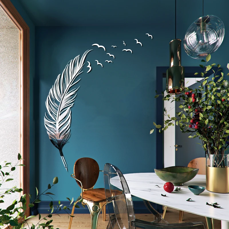 سبک، رنگارنگ، محکم در عین حال انعطاف پذیر، پر یکی از آثار هنری حقیقی طبیعت است. برند اِلِنسی محصولات خود را با الهام از طبیعت طراحی می کند که منشا انرژیست و سعی دارد تا این انرژی را در فضای خانه منعکس کند. این مدل AM072 برای نصب بصورت عمودی طراحی شده که می تواند در کنار میز تلویزیون، کنار مبلهای تک نفره و یا دیوار راهرو نصب شود. این محصول از جنس آینه های فوق سبک مولتی استایل طراحی و ساخته شده است. برای نصب، چسب دوطرفه بهمراه راهنما درون بسته محصول قرار گرفته است. آینه های مولتی استایل نسبت به آینه های شیشه ای از کیفیت پایین تری برخوردار بوده و صرفا جنبه تزئینی دارند. لازم به ذکرست در زمان دریافت، روکش مات و دودی شکلی روی سطح آینه قرار گرفته که باید پس از نصب به کمک ناخن یا چاقو از گوشه قطعات جدا شود تا انعکاس کامل آینه نمایان شود. نصب این محصول به کمک چسب دوطرفه موجود در بسته محصول انجام می شود و راهنمای نصب و جداسازی درون بسته موجودست.