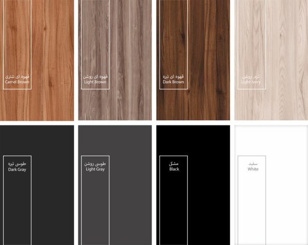 رنگ: قهوه ای تیره, قهوه ای روشن, سفید, طوسی تیره, طوسی روشن, قهوه ای شتری, مشکی