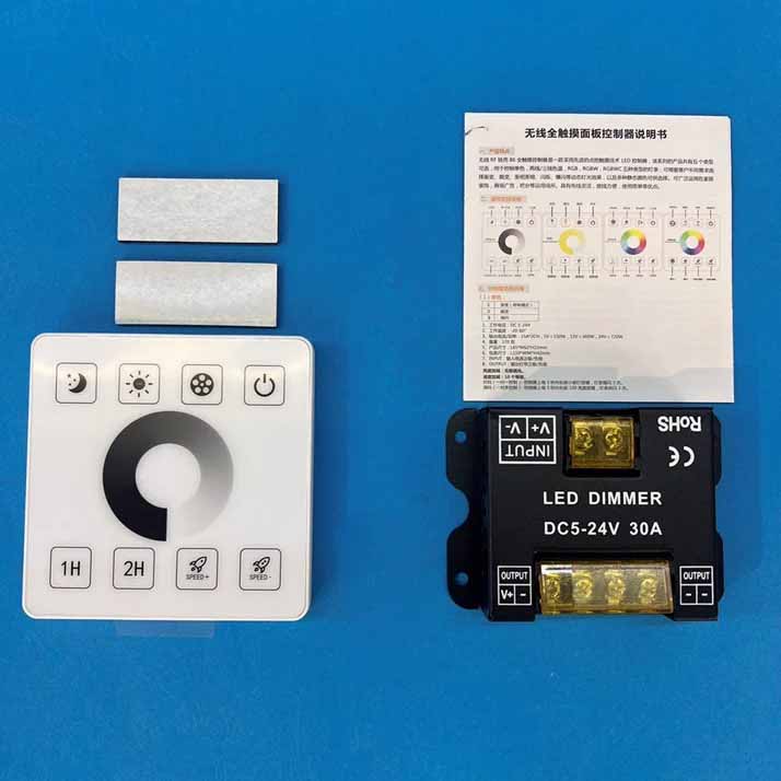 دیمر کلید پریزی بدون نیاز به سیم کشی مناسب لاین نوری دیمر ۱۲ الی ۲۴ ولت این دیمر یا کلید هوشمند لاین نوری مانند یک کلید دیواری که در همه منازل وجود دارد قابلیت نصب روی دیوار را دارد با این تفاوت که نیازی به سیم کشی برای این کلید دیواری ندارید و می توانید لاینر های خود را خاموش و روشن و یا شدت نور آنها را کنترل کنید یا حتی زمان خاموشی برای آن انتخاب کنید ، این کلید هوشمند دارای صفحه کنترل تمام تاچ و ظرافتی بسیار بالا در ساخت که ظاهری مناسب و مدرن نسبت به کلید های قدیمی دارد. این کلید دارای یک گیرنده می باشد که بین راه ترانس سوییچینگ و ریسه های شما قرار میگیرید ، از نظر ابعاد این گیرنده امکان عبور دادن از شیار مخصوص پروفیل را دارد که حتی در پشت پروفیل قرار بگیرد و از آنجایی که این دیمر نیازی به سیم کشی ندارد و به صورت وایرلس به کنترل خود متصل میشود شما هیچ محدودیتی برای قرار دادن کلید چراغ های لاینر خود ندارید .