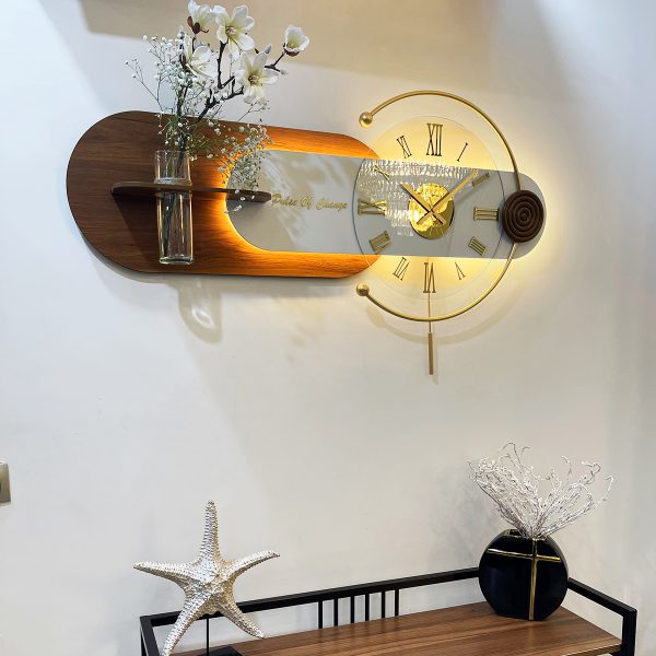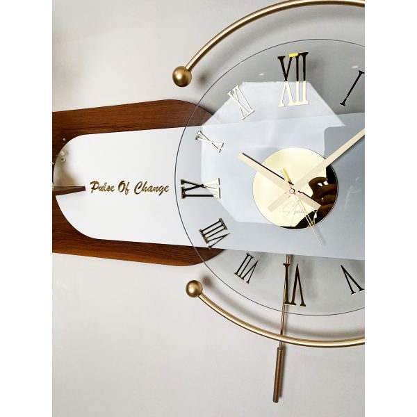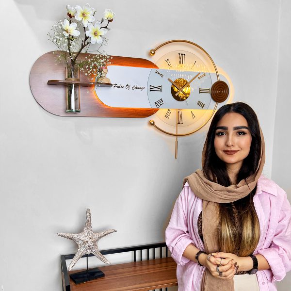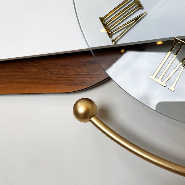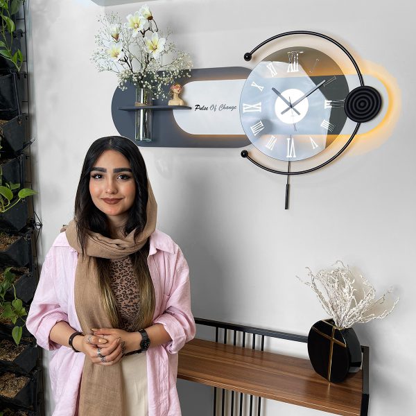 ساعت دیواری جدید سلنا اولین و جذاب ترین بخش این محصول، طراحی ساعت دیواری خاص با صفحه ای از جنس شیشه که در تم رنگی طوسی، به رنگ دودی براق بوده و در تم رنگی قهوه ای، صفحه از جنس شیشه شفاف با اعدادی از جنس آینه است. اعداد آینه ای براق که انعکاس کم نظیری روی این صفحه ساعت دیواری جدید سلنا دارد، چشم هر بیننده ای را به خود خیره می کند گویی که اعداد روی هوا معلقند. حلقه ای از جنس آهن با رنگ کوره ای بادوام که از دو طرف به گوی های کروی متصل شده است، طرح خاصی به سلنا بخشیده است. شعار این ساعت ” شبیه هیچکدام ” است چرا که نمونه و لنگه این ساعت را در جایی مشاهده نمی کنید. پاندول متحرک از جنس آهن، به هارمونی بهتره فریم ساعت افزوده است.