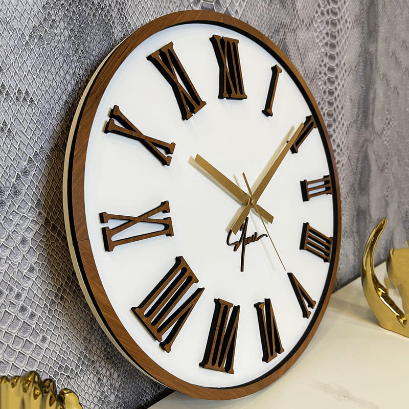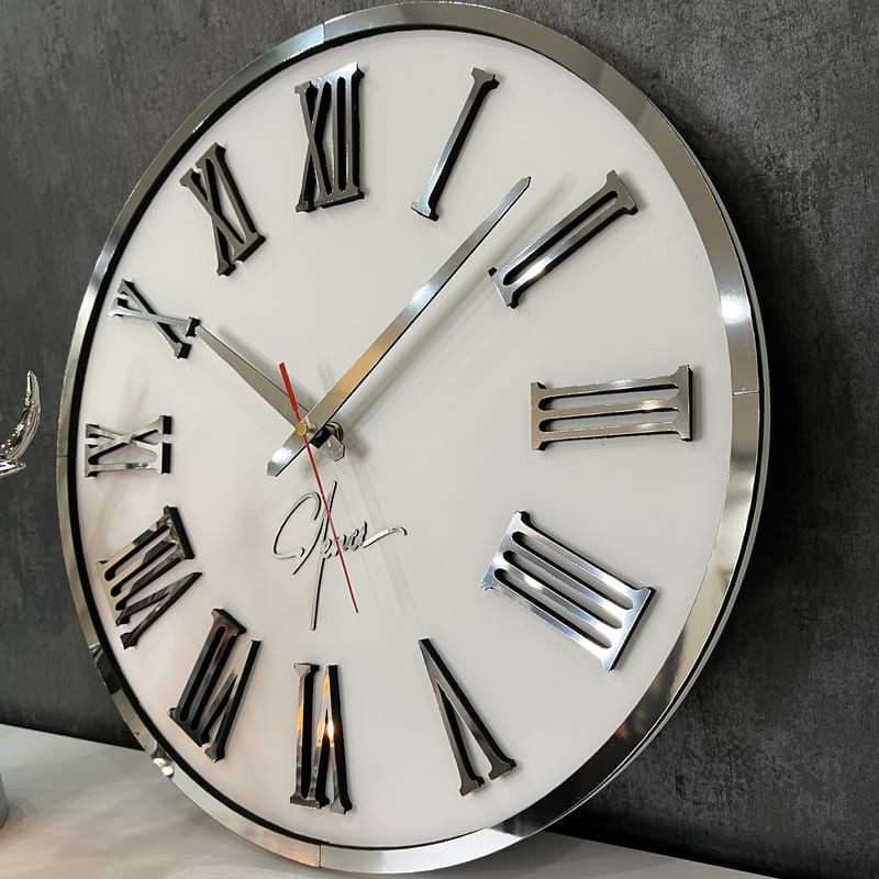 ساعت دیواری مدل Carolyn برخلاف سایر ساعت های موجود در بازار که نمایی تیره دارند، کاملا روشن و درخشان طراحی شده ازین رو برای خاص پسندان مناسب است. کارولین از بدنه چوبی با رنگ آمیزی سفید مات ساخته شده که پنل اعداد از جنس آینه های مولتی استایل روی آن قرار گرفته است. وجود اسپیسر های فومی زیر پنل اعداد و فریم ساعت، سایه زیبایی از اعداد روی صفحه ایجاد می کند که به زیبایی این محصول افزوده است. این ساعت دیواری قابلیت نصب روی کلیه سطوح صاف را داشته و موتور آن ساخت کمپانی معتبر یانگ تاون تایوان است.