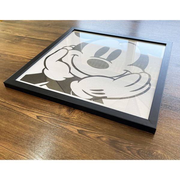 تابلو میکی موس کنار ساعت نیز از قاب پی وی سی ساخته شده و دارای شیشه می باشد. طرح کاراکتر میکی ماوس نیز روی پارچه بومی چاپ شده و چاپ آن از نزدیک بسیار با کیفیت است. موتور این ساعت دیواری فلزی ساخت کمپانی یانگ تاون تایوان بوده و دارای ضمانت 60 ماهه النسی می باشد. ساعت دیواری فلزی که به کمک یک میخ یا پیچ روی دیوار نصب می شود، قطر 40 سانتی متری داشته و تابلو دیواری نیز ابعاد 40 در 40 سانتی متر دارد.