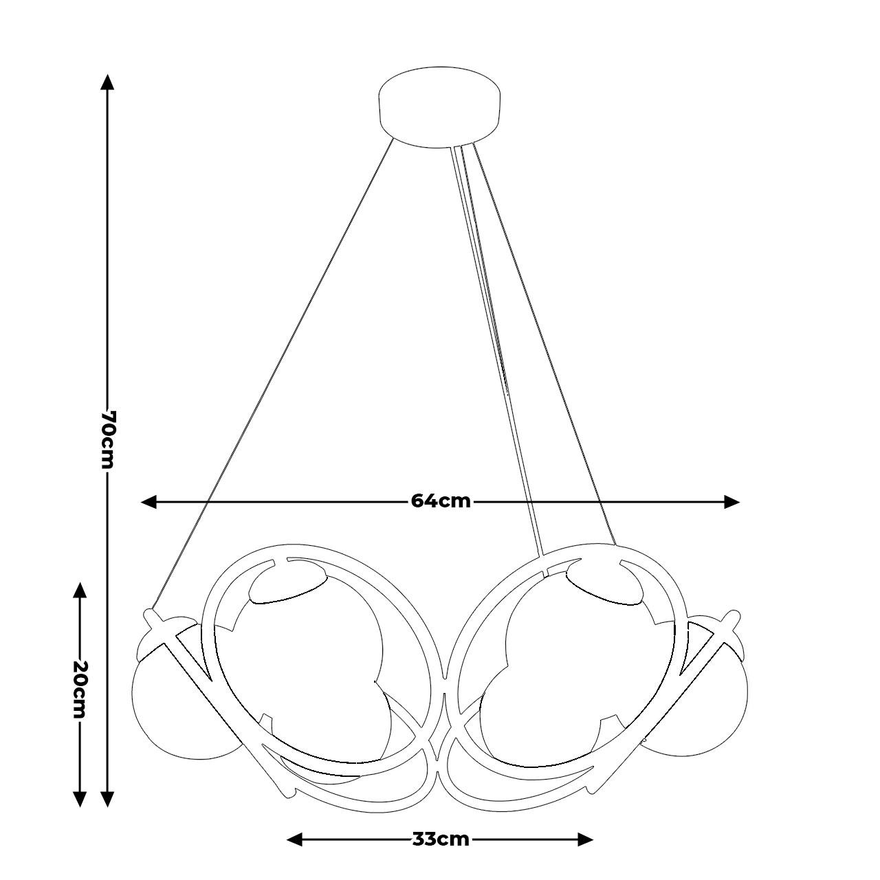 لوستر شش شعله آرام سری A812/6/WT با طراحی متقارن و ترکیب رنگ مشکی و سفید، انتخابی شیک و کاربردی برای فضاهای داخلی مدرن است. این محصول با ابعاد ۷۰x۶۰x۶۰ سانتیمتر و وزن ۳.۵ کیلوگرم، جلوهای متوازن و حجیم به سقف میبخشد و با شش شعله نورانی، روشنایی مطلوبی را در محیط ایجاد میکند. بدنه فلزی مشکیرنگ در کنار حبابهای سفید، ترکیبی مینیمال و هماهنگ با دکوراسیونهای صنعتی، کلاسیک یا مینیمال به وجود میآورد.