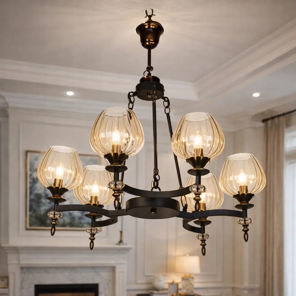 لوستر شش شعله کد 1702/6BK-G چشمه نور