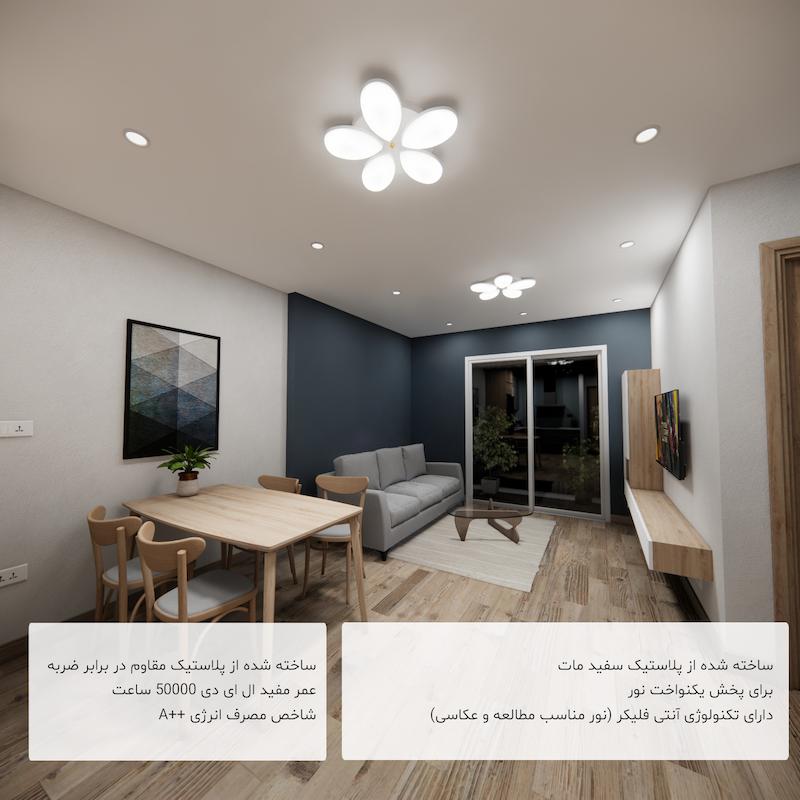 این لوستر مجهز به فناوری LED با عمر مفید ۵۰,۰۰۰ ساعت بوده و بدون نیاز به تعویض لامپ، مصرف انرژی بهینهای دارد. بدنه آن از پلاستیک مات مقاوم و قسمت بالایی از آلومینیوم ساخته شده که ضمن دوام بالا، به دفع حرارت کمک میکند. کنترل نور از طریق ریموت، موبایل یا کلید برق ممکن است و تکنولوژی ضد فلیکر آن، نور مناسب برای مطالعه و عکاسی را تضمین میکند. بستهبندی ایمن، ارسال رایگان، یک سال گارانتی از دیگر مزایای خرید این محصول هستند.