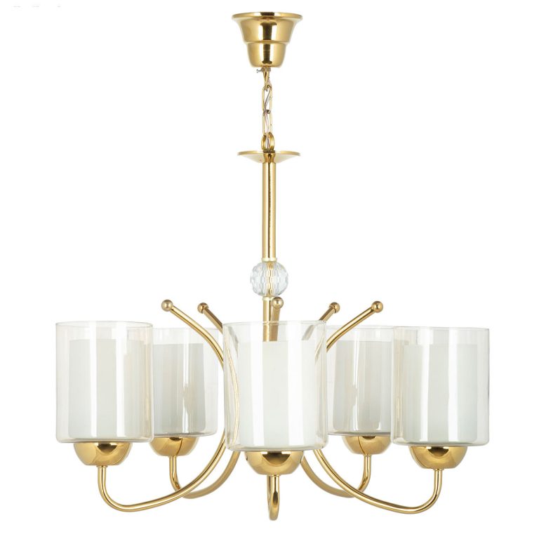 لوستر برنزی 5 شعله چشمه نور کد C2129/5 بی رنگ شفاف