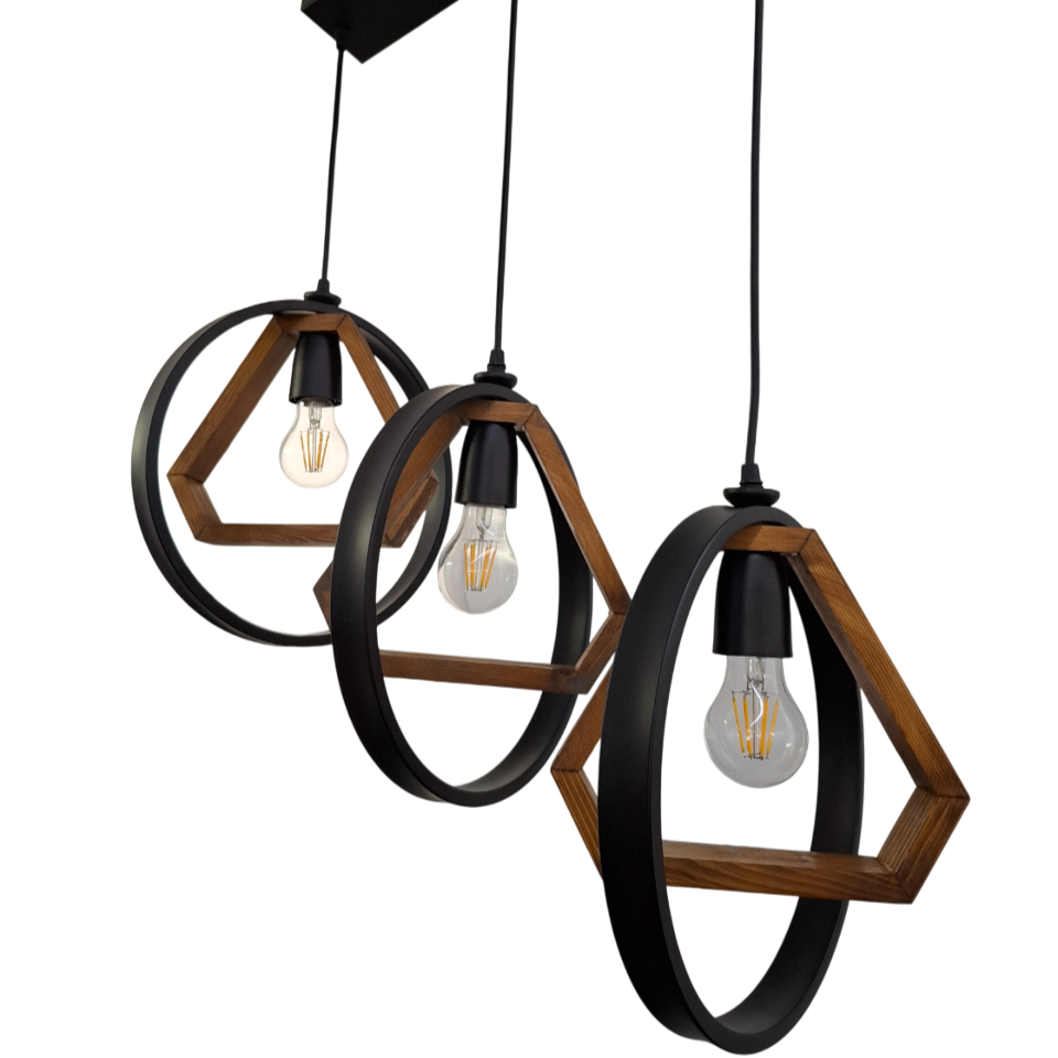 این لوستر روستیک، تجسمی باشکوه از تلاقی متریالهای اصیل است که با طراحی جسورانه خود، روحی تازه به فضای خانه میبخشد. قابهای مثلثی چوبی با بافتی گرم و زنده، در میان حلقههای مقتدر فلزی سیاه به پرواز درآمدهاند تا ترکیبی بینظیر از نظم هندسی و آزادی طبیعت را به نمایش بگذارند. با روشن شدن شش شعلهی این اثر هنری، تلالو نور از میان این ساختار درهمتنیده، بازی سایهروشنهای جذابی را بر روی دیوارها خلق میکند که هر بینندهای را به آرامشی عمیق و تماشای یک ضیافت نوری دعوت میکند.