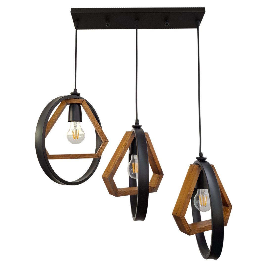 لوستر چوب و فلز 3 شعله چشمه نور مدل 1354/3