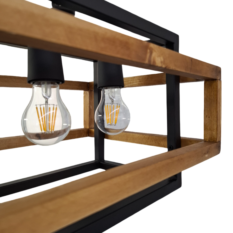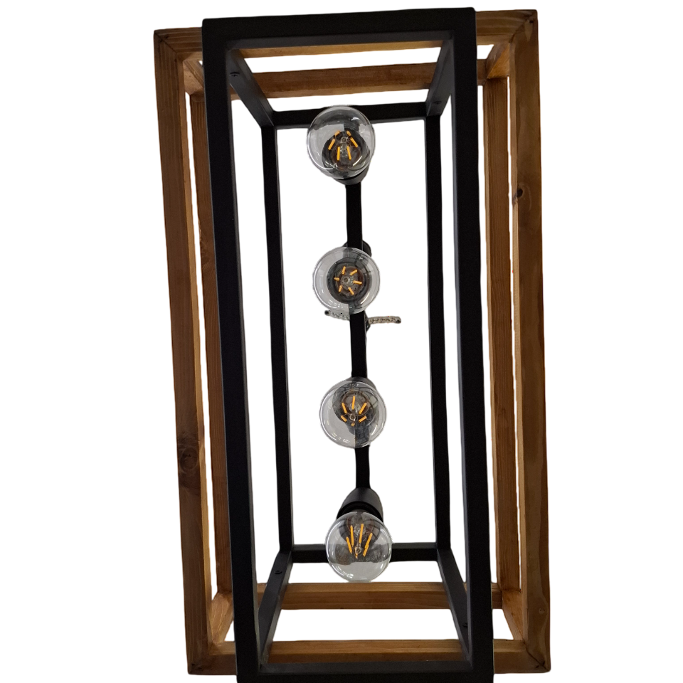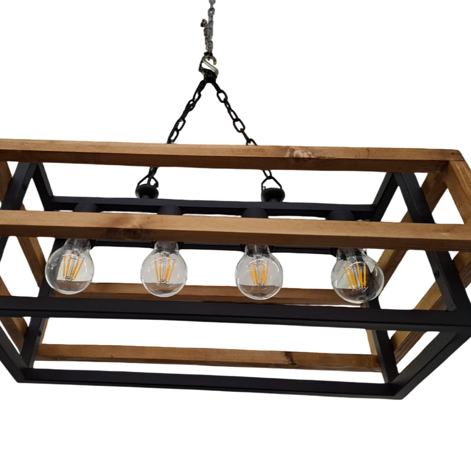 این لوستر چهارشعله، مظهر توازن میان متریالهای متضاد است؛ جایی که قابهای مستطیلی چوبی و فلزی در هم فرو رفتهاند تا نظمی هندسی و مدرن را به نمایش بگذارند. ردیف منظم چهار منبع نور در مرکز این قابهای متداخل، حسی از پایداری و شکوه را القا میکند که برای فضای بالای میز ناهارخوری یا مرکز سالن پذیرایی ایدهآل است. تماشای این ترکیب که همزمان یادآور خانههای گرم روستایی و استودیوهای مدرن صنعتی است، حسی از اصالت را در فضای زندگی شما جاری میکند و به محیط، هویتی بصری و منحصربهفرد میبخشد.