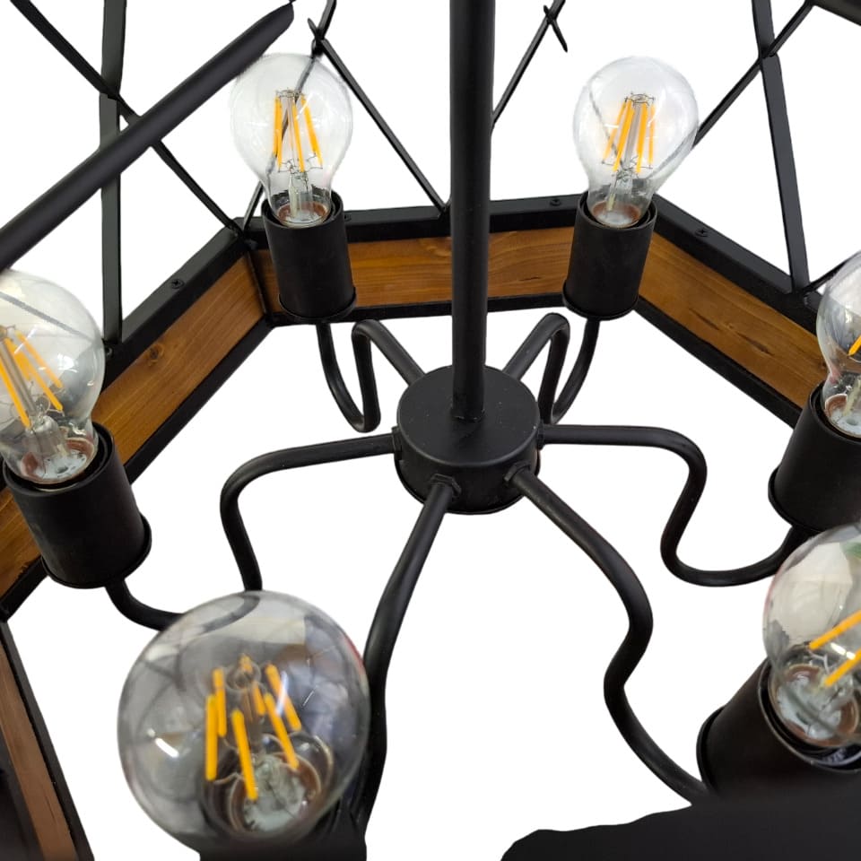 مشخصات محصول لوستر چوب و فلز 6 شعله چشمه نور مدل 1348/6