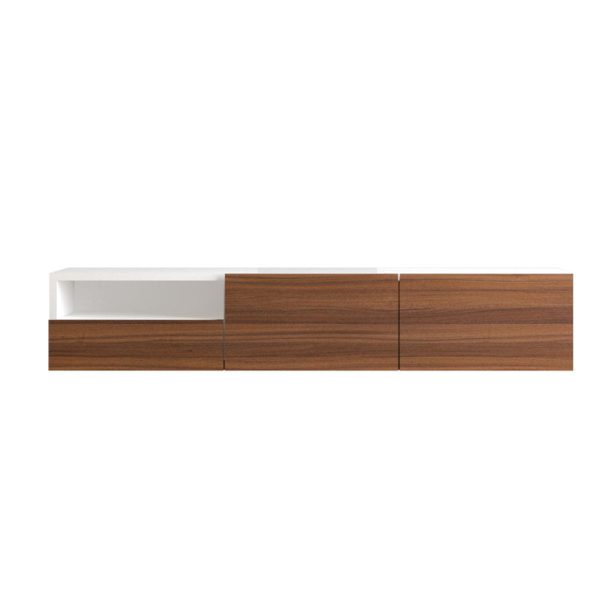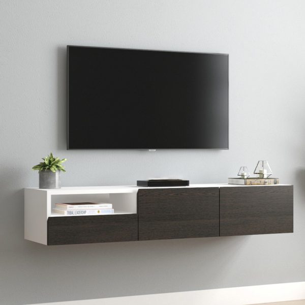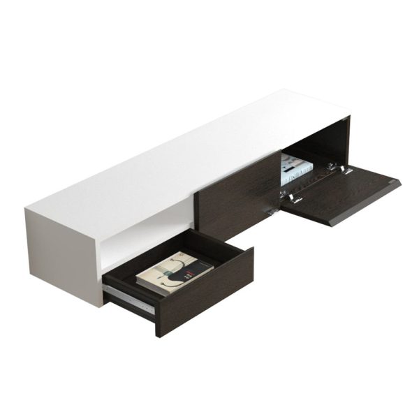 میز تلویزیون مدرن تات دو محفظه با درب داشبوردی برای قرار دادن وسایل در دل خود دارد و علاوه بر آن یک شلف که امکان قرار گرفتن دستگاه گیرنده و یک کشو نیز برای قرار دادن وسایل اضافی شما را از هرگونه کمد و کشو اضافی بی نیاز می کند. این محصول همانند یک شلف دیواری ، امکان تزئین با مجسمه ، آباژور ، انواع اکسسوری را نیز دارد. میز تلویزیون جدید مدل تات به کمک یک فیتینگ چوبی روی دیوار نصب شده امکان جابجایی پس از نصب را نیز دارد.