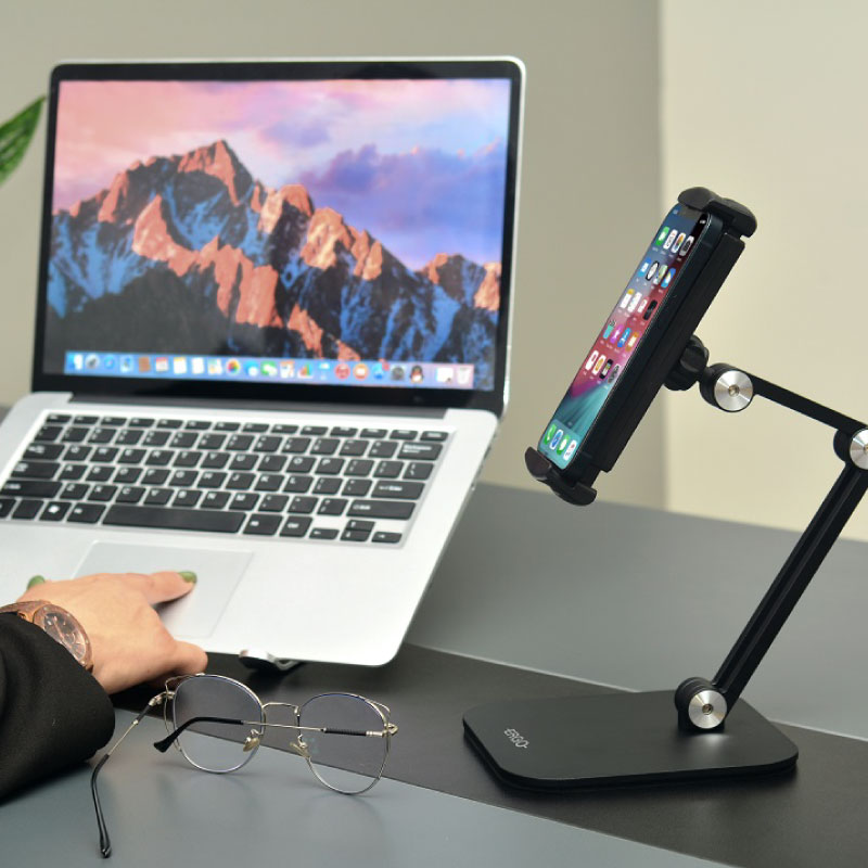 پایه نگهدارنده موبایل WMH011 با قابلیت تنظیم ارتفاع و زاویه ی تبلت و موبایل در موقعیت های متفاوت بسته به نیاز کاربر و پایداری در تمامی زوایا به واسطه استفاده از پایه فلزی مقاوم و وزن کم محصول، مناسب کسانی است که به واسطه شغل و فعالیت نیاز به شرکت در جلسات و برگزاری کلاس های آنلاین دارند.