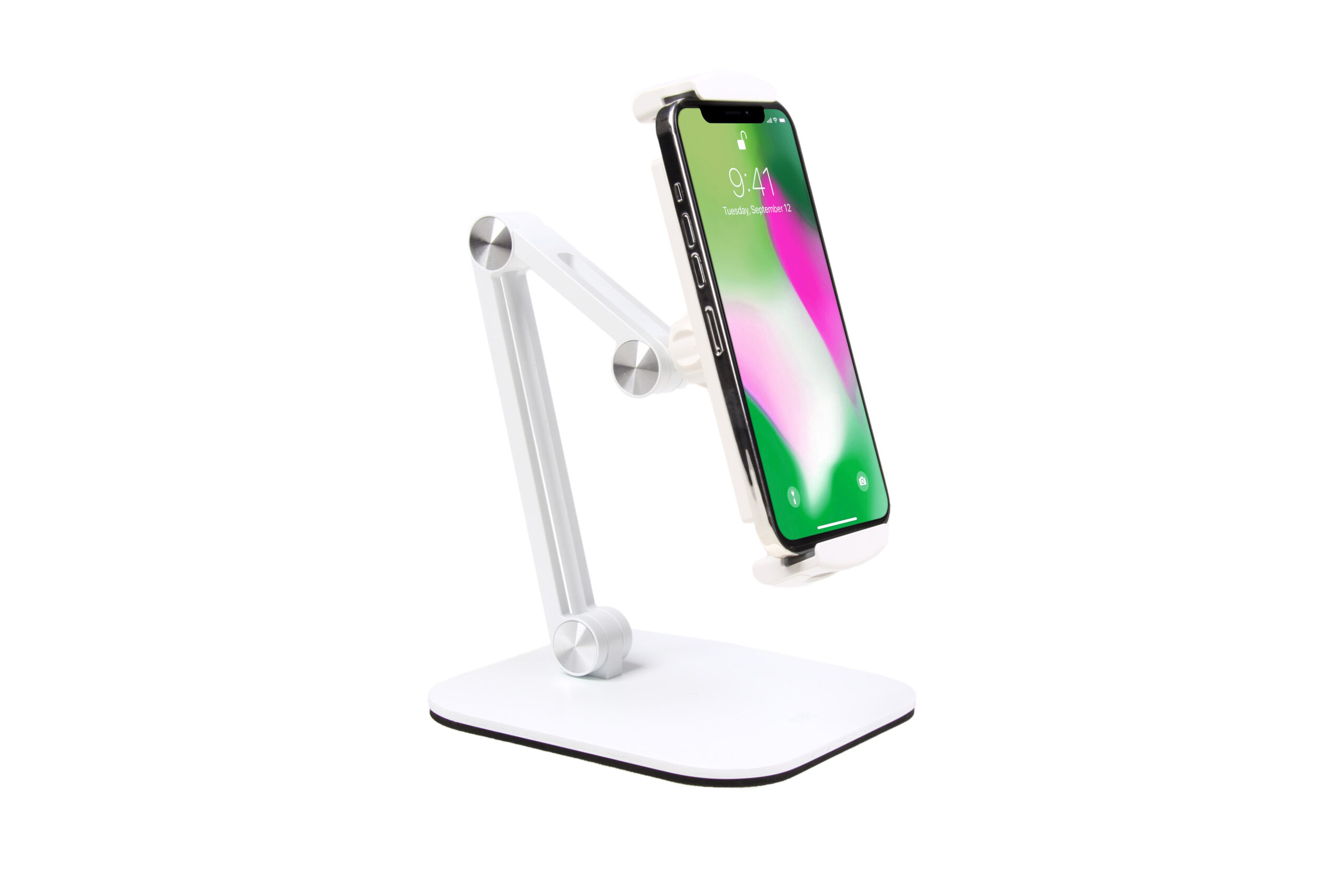 - دارای پیچ رگلاژ جهت تنظیم میزان نرمی حرکت مفاصل با توجه به وزن موبایل و تبلت